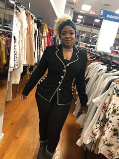 For Campbell, thrift shopping has always been a way of life. “I could just touch and feel a piece of fabric and feel the energy of clothing,” she said. She treasures the memory of going to yard sales and vintage shops with her grandma as a kid in South Carolina. Be it a brown-and-orange patterned crop jacket with enamel buttons they found together, or a bluish purple carpet-textured ankle-length sweater she found at the Salvation Army, she can tell the stories behind each of them.