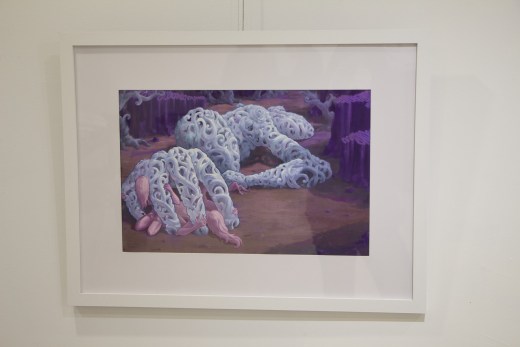 The gallery show was put together by two artists, Hui Ma from Beijing, and Authan Chen from Taiwan. They use watercolor, traditional ink, and digital illustration to tell their stories of sexuality and identity as Asia-born LGBTQ people coming to the US. “Semi-Freud,” the name of the show, plays with the concept of “semi-fluid” and the theory of Sigmund Freud. It illustrates the vague in-betweenness of the artists’ identities–the ambiguity of male and female, the combination of tradition and present, and the fusion of East and West–to express a series of emotions embodied in intimacy, sexual desire, social isolation, and homophobic anxieties.