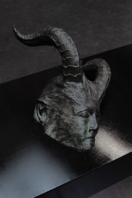 Lu’s latest installations include a silicone replica of Lu’s elbow inked with the uncertainty principle formula in quantum mechanics; and a similar model of Lu’s forearm with another tattoo of the Moonlight Tower from Dazed and Confused. In the same installation, Lu showed me a bronze sculpture of a monster with a bull’s head and a human face.