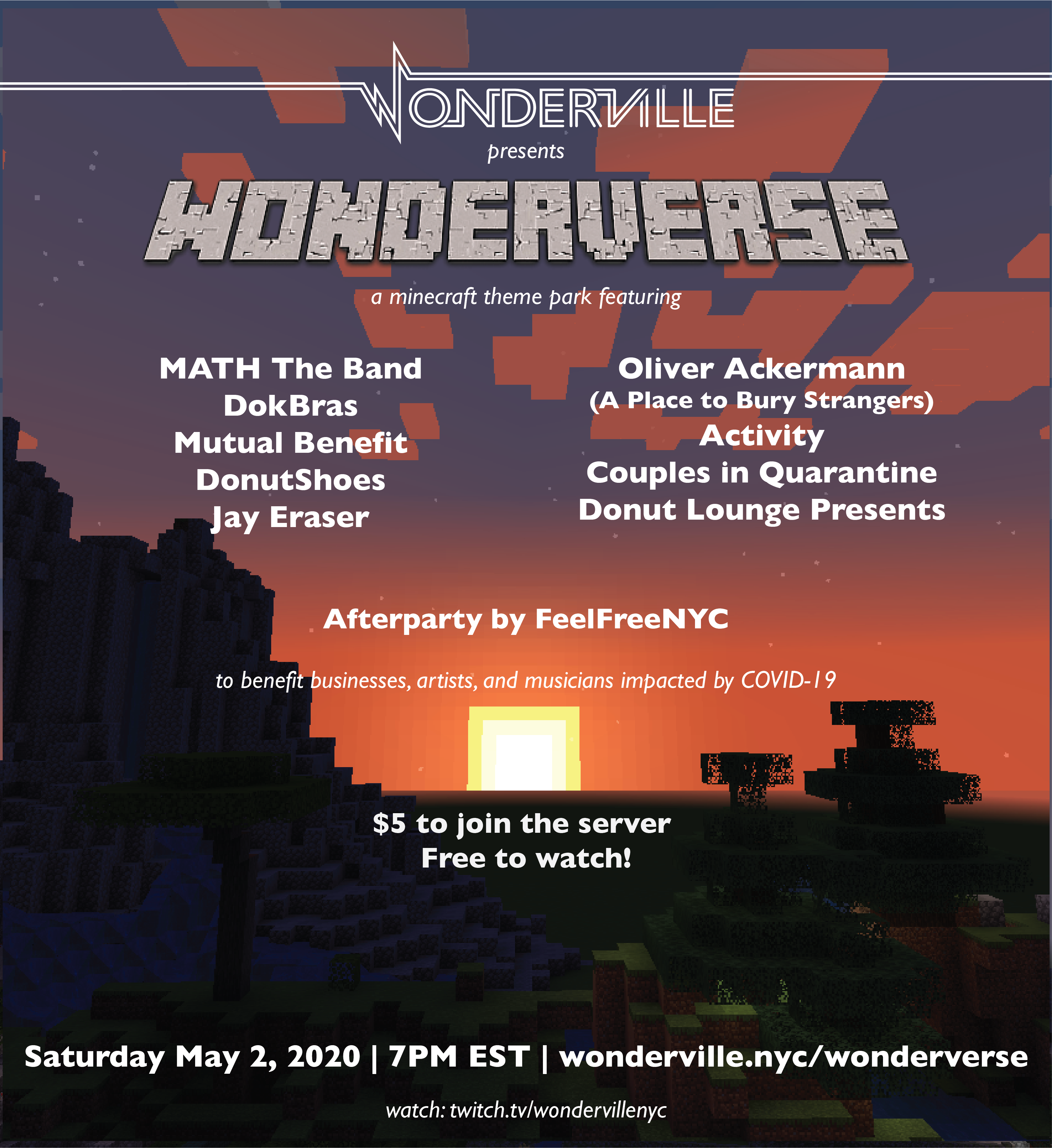 Tickets to the Wonderville Minecraft lobby will be $5 each, and will grant access to Wonderverse for 24 hours. That should give the audience enough time to both enjoy the live concerts — which will be held at set dates and times — and play around with the interactive amenities of Wonderverse, which include recreations of the indie arcade games sitting inside the actual venue in Bushwick.
