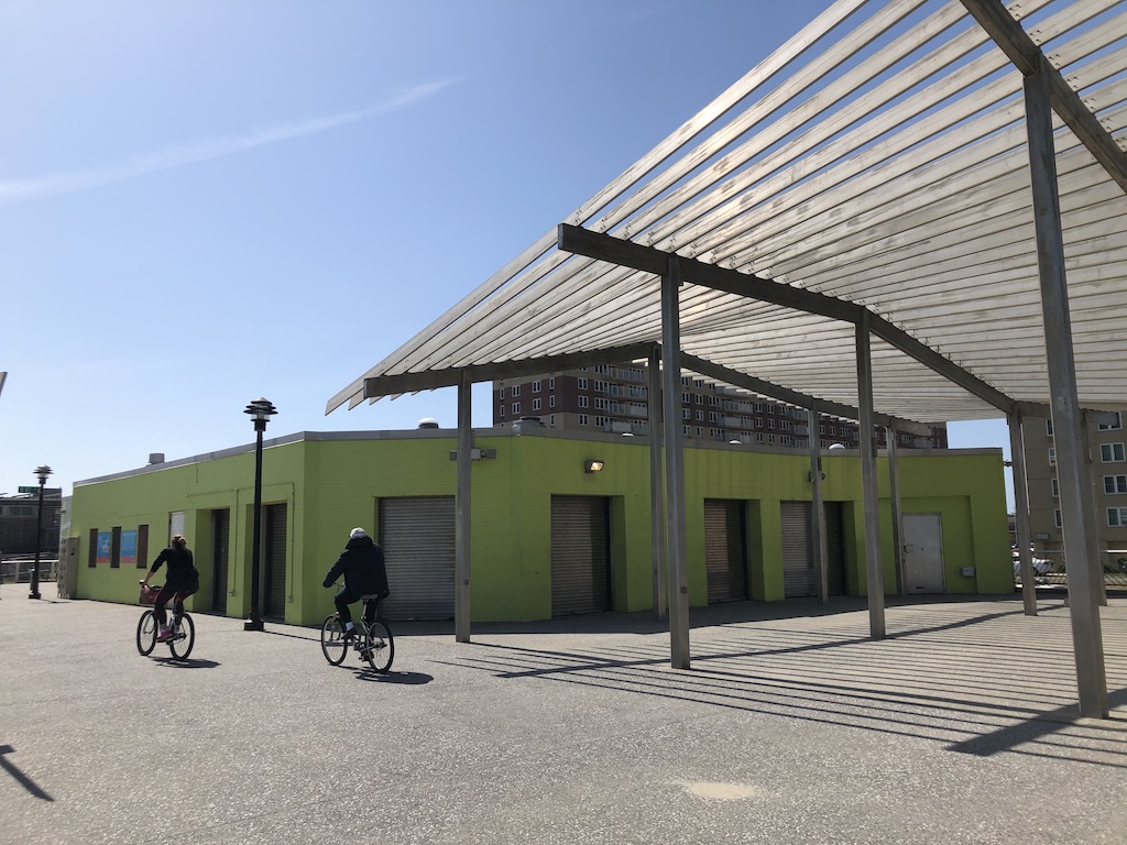 According to the parks department, food vendors will be allowed to sell grub to-go, but don’t expect the usual party scene at the boardwalk concessions. Last week,popular arepa stand Caracas announced via Instagram that while it normally would’ve reopened by now, it was “still figuring things out on how to make it safe for ourselves and for our community as well as waiting to get final city guidelines.” Caracas cited concerns such as “bathrooms, enforcement, rent, etc.” This afternoon, none of the boardwalk vendors– who normally soft-open ahead of the Memorial Day rush– were up and running. Restrooms were open as usual, with signage telling users to socially distance.