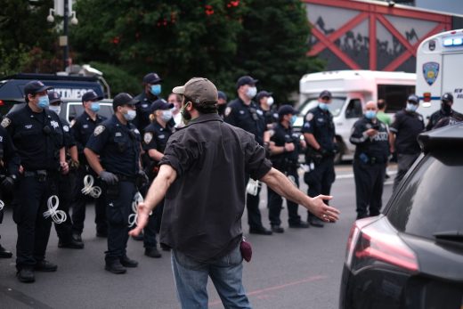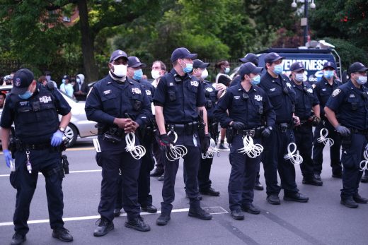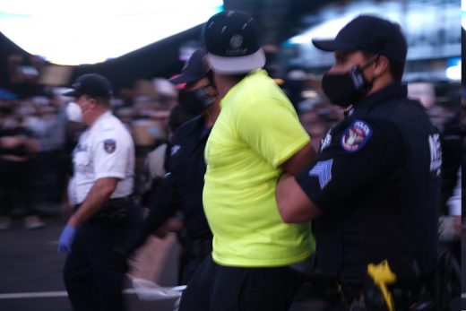 Smoke and apparent tear gas billowed from the center of the protest, and officers launched flares to clear people from the streets. The NYPD began detaining people at an increased rate, with teams of as many as seven officers wrestling people to the ground. Protesters screamed and called for their colleagues’ release, but police continued pushing protesters south on Flatbush Avenue, towards Prospect Park.