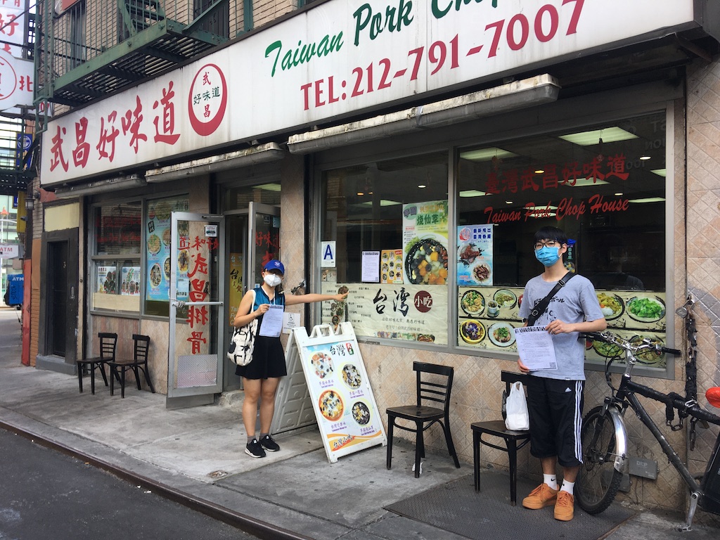 On Sunday, 17 young Chinese people divided into eight teams and walked through the Chinatowns of Manhattan and Flushing, Queens. They visited Chinese vendors, inquired about their businesses in the midst of the pandemic and protests, and encouraged them to display Chinese For Black Lives posters in their storefronts.