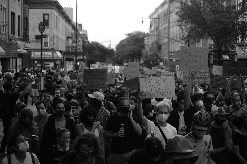 On Thursday evening, service industry workers gathered on Franklin Avenue in Crown Heights to call for the abolition of the NYPD, and citywide reform in how communities, particularly communities of color, are policed. The march was a striking demonstration of the particular cultural moment in which these protests are occurring: The Covid-19 pandemic has decimated the service industry, and has adversely affected both service workers and communities of color. As the crowd swelled on Franklin Avenue, near Eastern Parkway, organizers called for solidarity, and for widespread reform.