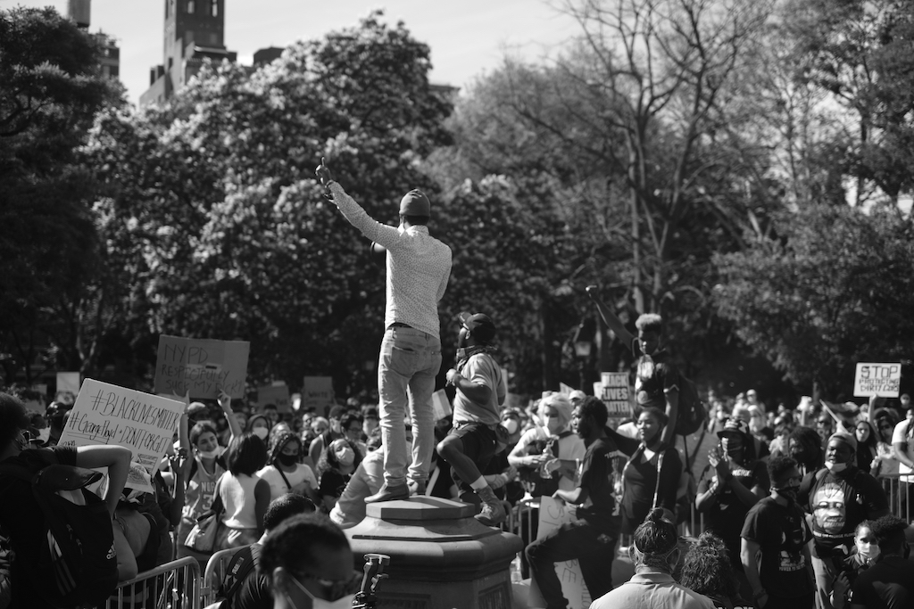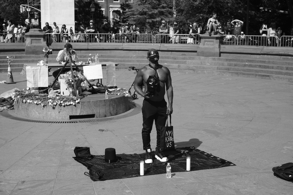 At 4pm, thousands of protesters began gathering in sweltering midday heat at Washington Square Park for what has now become a daily march through Manhattan. An organizer who was a former member of the armed forces led the rally, calling for love and nonviolent protest. “The two most important things are focus and faith,” he said, “Focus on the mission, which is dismantling the system, and faith that the people around us are together.”