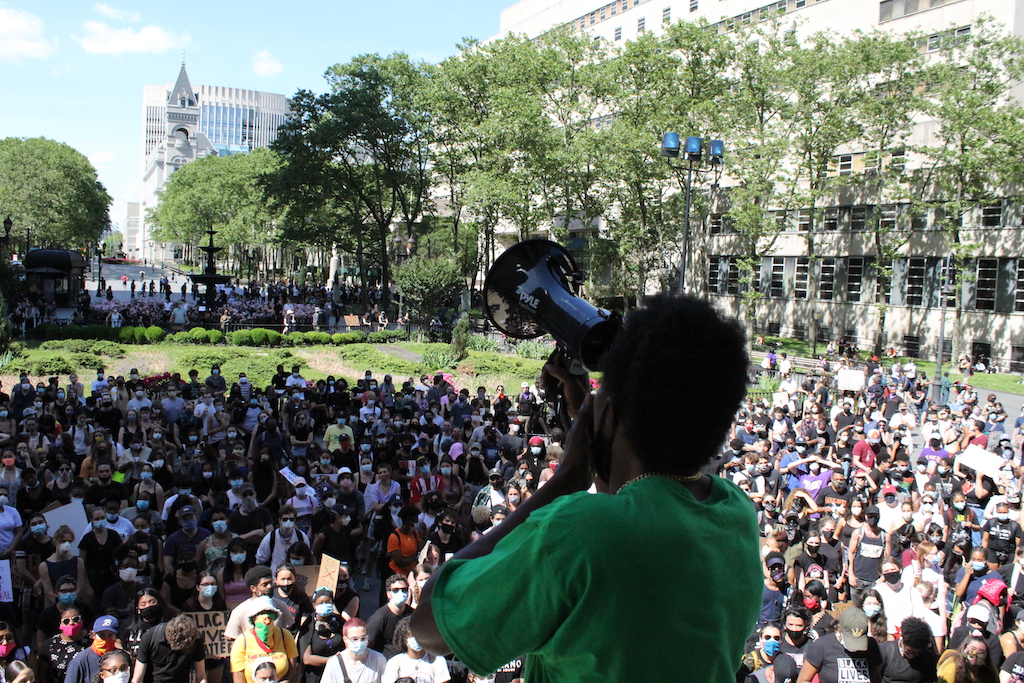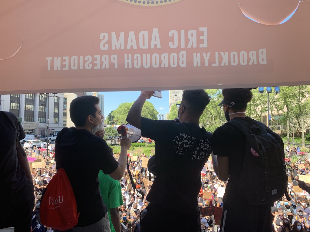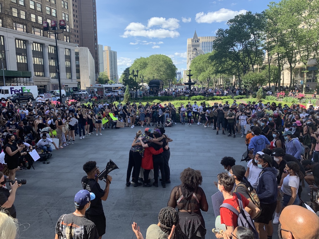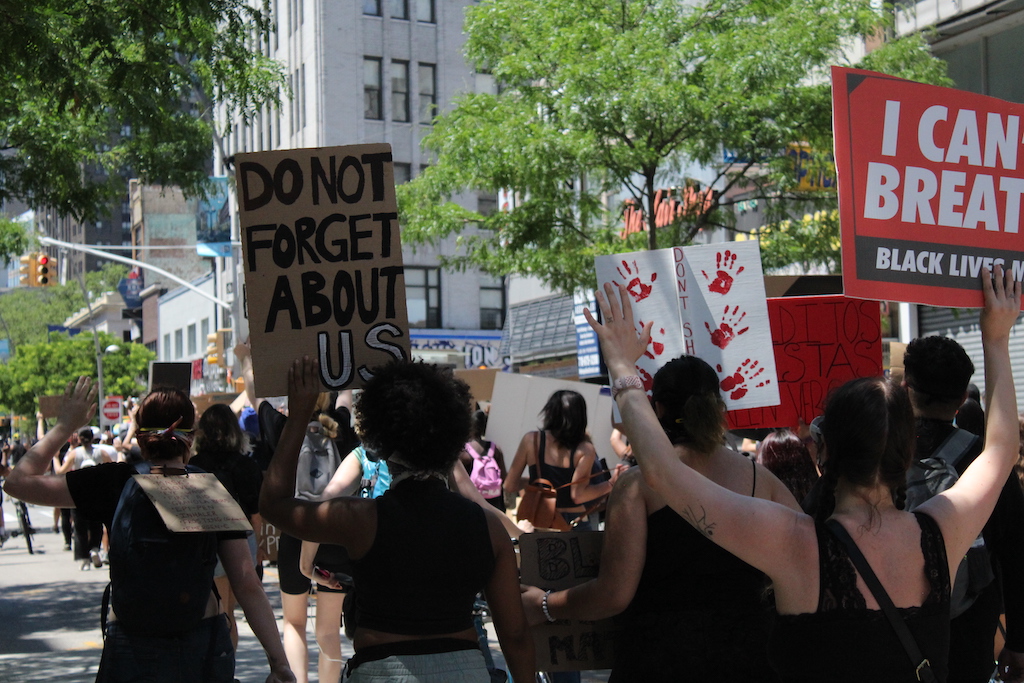 On the second day without curfew, as thousands gathered in Houston, Texas to mourn the death of George Floyd, protesters once again took to the streets of New York City yesterday to call for an end to police brutality. A movement that was initially marked by clashes with the NYPD has in its second week become more multifaceted, with increasingly strident demands and the support of politicians citywide. As of Tuesday morning, the NYPD reported that there had been no arrests Monday night.