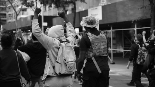 Standing on the park’s fountain, an organizer who identified himself as Tito called out news outlets for only focusing on the negative and violent aspects of the protests, and asked protesters to remain peaceful as they continued downtown. “If you use violence, you will receive violence,” he warned of the police response.