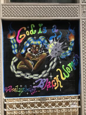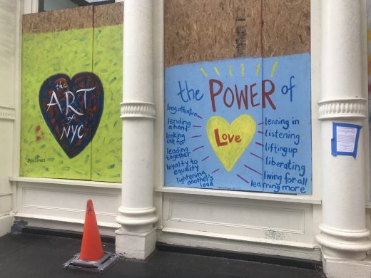 The Soho Social Impact project started two weeks ago at Greene Street and Grand Streets, and has quickly spread all over the neighborhood. Tristan Reginato, who grew up in Harlem and whose father long lived in Soho when it was an artists hub, reached out to people who went to art school with him and built a team of 12 volunteers. “Soho is basically going to be a public art gallery/social impact space,” says Reginato.