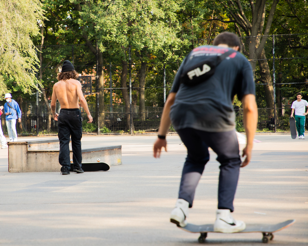 On any given day at around 10 a.m., skateboarders slowly begin to trickle in and out of the northwest corner of Tompkins Square Park. By around 4 p.m., the corner is bustling with young people skating, socializing, and quite often smoking marijuana. The flat, rectangular piece of asphalt which regulars refer to as TF (short for Training Facility) has long been a home to both the East Village’s most seasoned and newest skateboarders. Last year, the skateboarders at TF—with the help of an online petition—successfully battled the NYC Department of Parks and Recreation over a proposed plan to fill in the asphalt lot with AstroTurf. This summer, improvements were made to the space after three ramps were donated by the skateboard and fashion company Supreme. While many skateboarders are under the assumption that the ramps are permanent additions to TF, the Parks Department has different views on the matter.