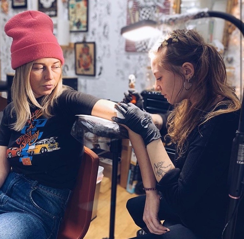 Juliette HavardTrapani, who goes by Juju, joined The Secret Door last year. Now, because of the pandemic, The Secret Door is temporarily closed. One of the owners, though, opened a tiny private studio when the pandemic-related regulations allowed it, and Juju is now working there. Job semi-security aside, though, being a tattoo artist during a pandemic is mentally and socially stressful. On Instagram, she’s been vocal about her concerns and rules for safety — in the end, it’s an equation factoring in strangers, needles, and a lot of touching.