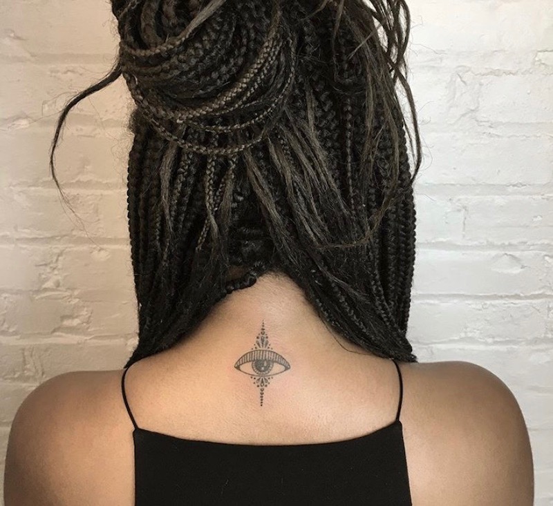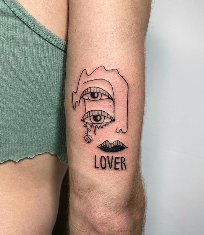 “Come up on the second floor, and then it’s the second door!” Juju told me over the phone when I asked how to get to The Secret Door, the Williamsburg tattoo parlor where she worked. Outside, the grey, graffitied warehouse had barren walls; inside, dim-lit corridors and innumerable doors made it look like a maze. Ironically, “The Secret Door” was printed in small characters on the heavy metal door in question. Inside, a few green plants and some vintage pieces of furniture here and there worked as a bright frame to all the art, in sketches or framed, that lived in the open-space loft-style studio. Above Juju’s station, outlines of abstract faces, minimalist moons and elegant designs mapped the wall and welcomed every client into Juju’s world.