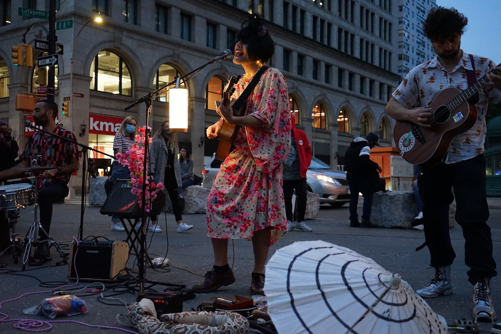 Public spaces also allow Pinc Louds to interact with, and try to win over, people who might not otherwise come across their music. While Tompkins Square Park is their favorite outdoor venue, it has a certain familiarity antithetical to the Pinc Louds project. In the coming months, Claudi says, they plan to play at Central Park in Manhattan, and McCarren and Prospect Parks in Brooklyn. During the week, Claudi will venture out alone, and play at unexpected locations in the city, like the Flatiron building.
